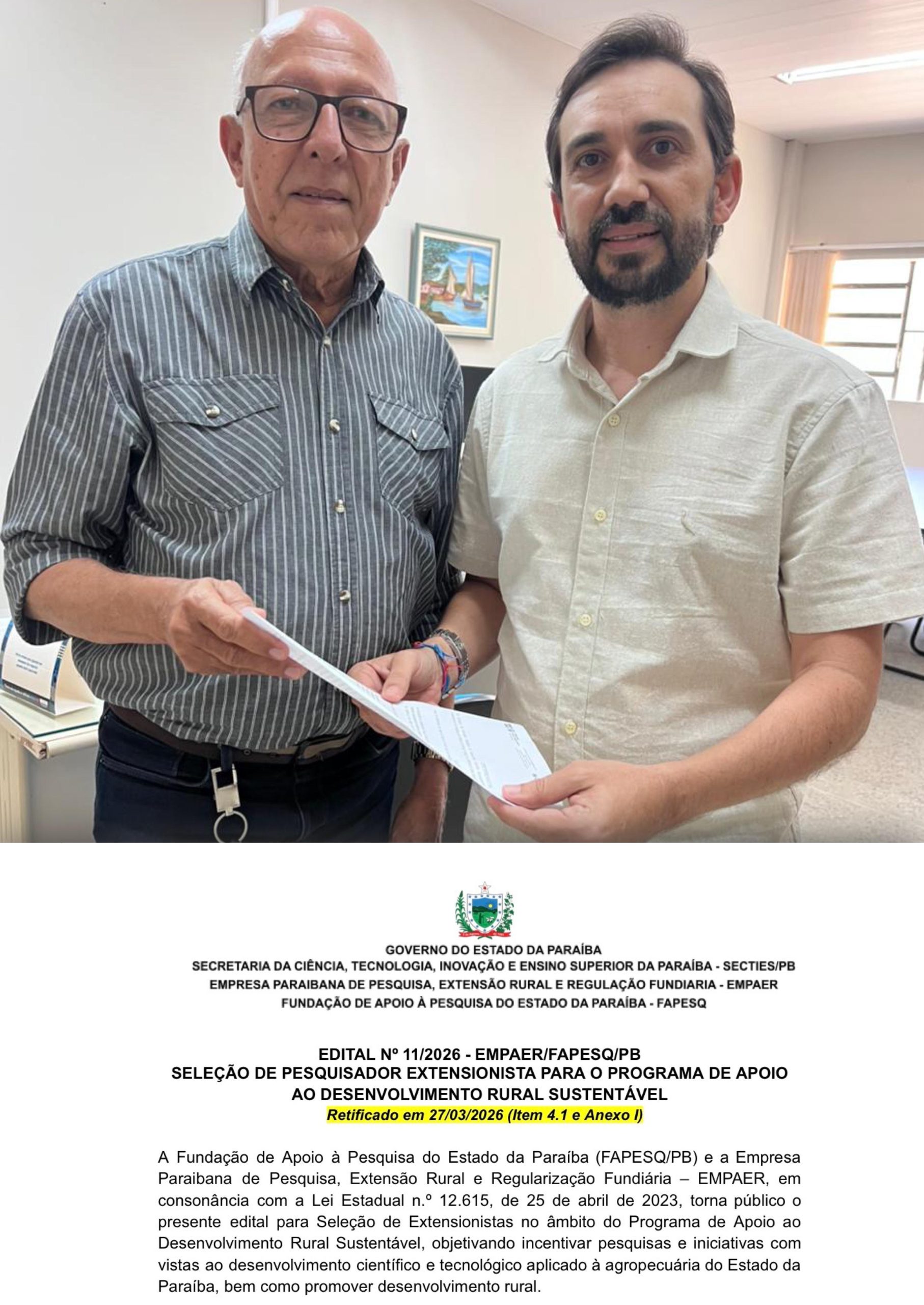 A Empresa Paraibana de Pesquisa, Extensão Rural e Regularização Fundiária (Empaer-PB) atendeu ao ped…