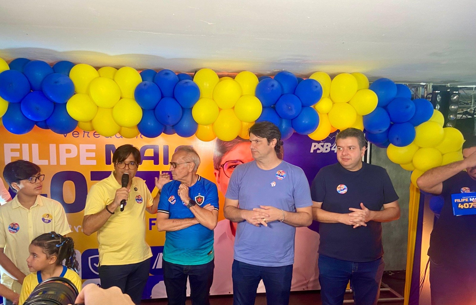 O candidato a vereador de João Pessoa, Filipe Maia (PSB), reuniu apoiadores neste sábado (24), no clube Cabo Branco, para evento de lançamento de sua candidatura. Ao lado do prefeito Cícero Lucena (PP) e do vice, Leo Bezerra (PSB), ele destacou a experiência de uma trajetória de 13 anos como servidor público, que lhe proporcionou experiência de gestão e uma visão clara das necessidades e desafios da população.