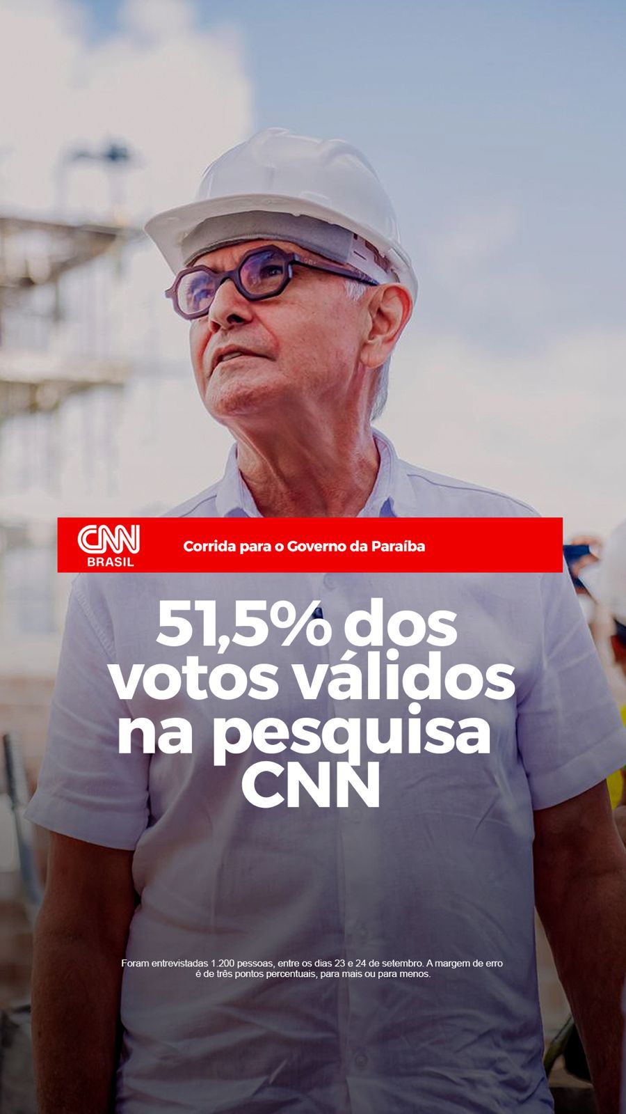 pesquisa CNN/Real Time Big Data publicada nesta quinta-feira (25) o prefeito de João Pessoa, Cícero Lucena lidera todos os cenários para o Governo da Paraíba. Ao todo, foram apresentados dois cenários na pesquisa, todos liderados por Cícero Lucena.